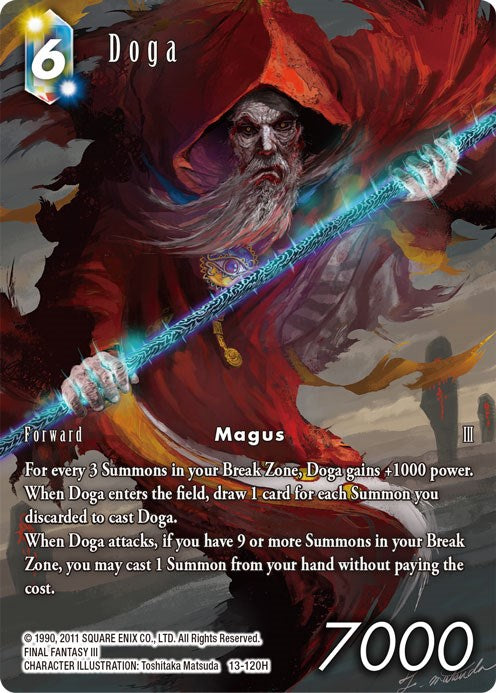 When Doga attacks, if you have 9 or more Summons in your Break Zone, you may cast 1 Summon from your hand without paying the cost.
