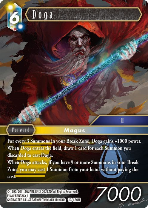 When Doga attacks, if you have 9 or more Summons in your Break Zone, you may cast 1 Summon from your hand without paying the cost.