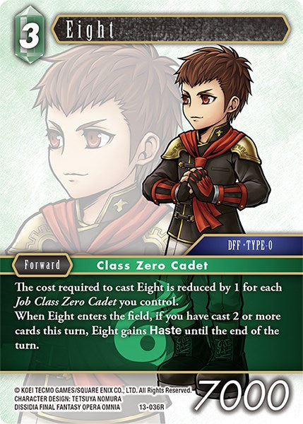 The cost required to cast Eight is reduced by 1 for each Job Class Zero Cadet you control.