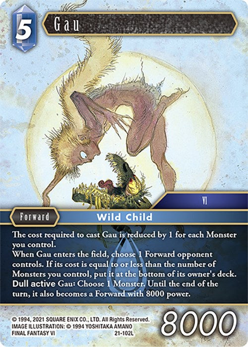 When Gau enters the field, choose 1 Forward opponent controls. If its cost is equal to or less than the number of Monsters you control, put it at the bottom of its owner's deck.