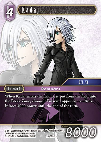 When Kadaj enters the field or is put from the field into the Break Zone, choose 1 Forward opponent controls. It loses 4000 power until the end of the turn.