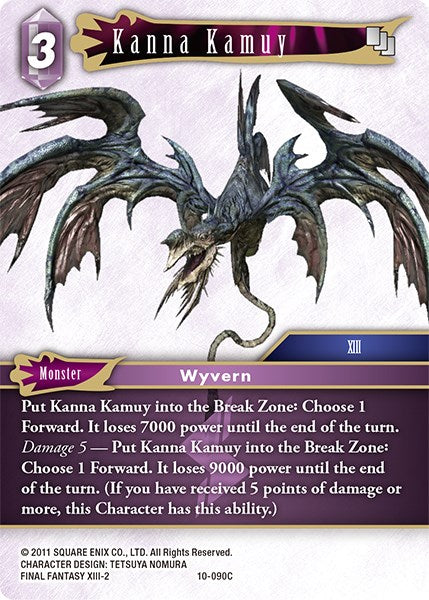 Damage 5 — Put Kanna Kamuy into the Break Zone: Choose 1 Forward. It loses 9000 power until the end of the turn. (If you have received 5 points of damage or more, this Character has this ability.)