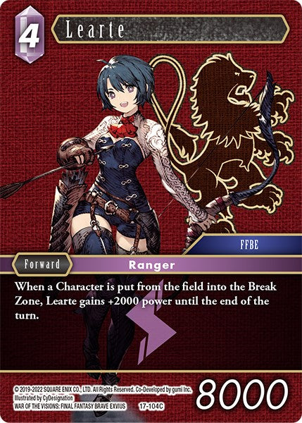 When a Character is put from the field into the Break Zone, Learte gains +2000 power until the end of the turn.
