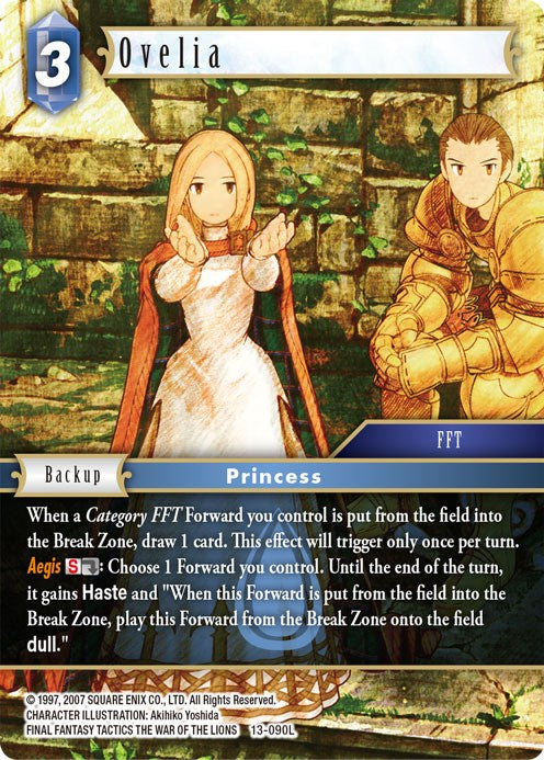 When a Catagory FFT Forward you control is put from the field into the Break Zone, draw 1 card. This effect will trigger only once per turn.
