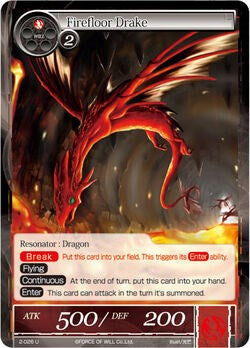 Resonator : Dragon [Break] Put this card into your field. This triggers its [Enter] ability. [Flying] [Continuous] At the end of turn, put this card into your hand. [Enter] This card can attack in the turn it's summoned.
