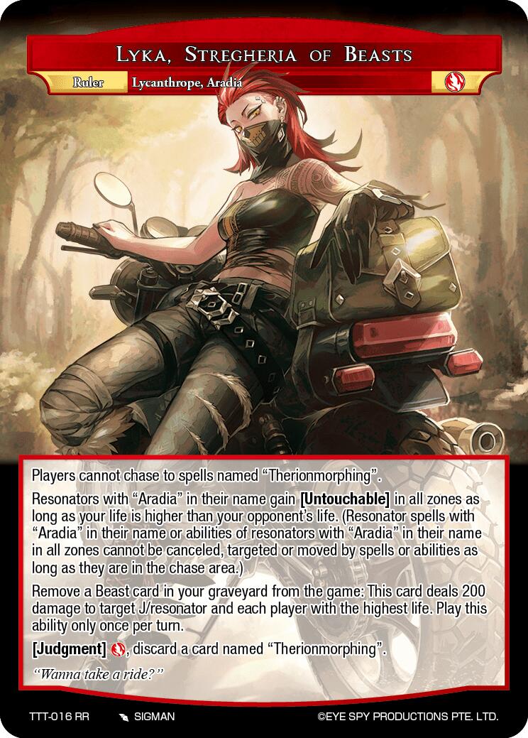 Resonators with "Aradia" in their name gain [Untouchable] in all zones as long as your life is higher than your opponent's life.(Resonator spells with "Aradia" in their name or abilities of resonators with "Aradia" in their name in all zones cannot be canceled, targeted or moved by spells or abilities as long as they are in the chase area.)