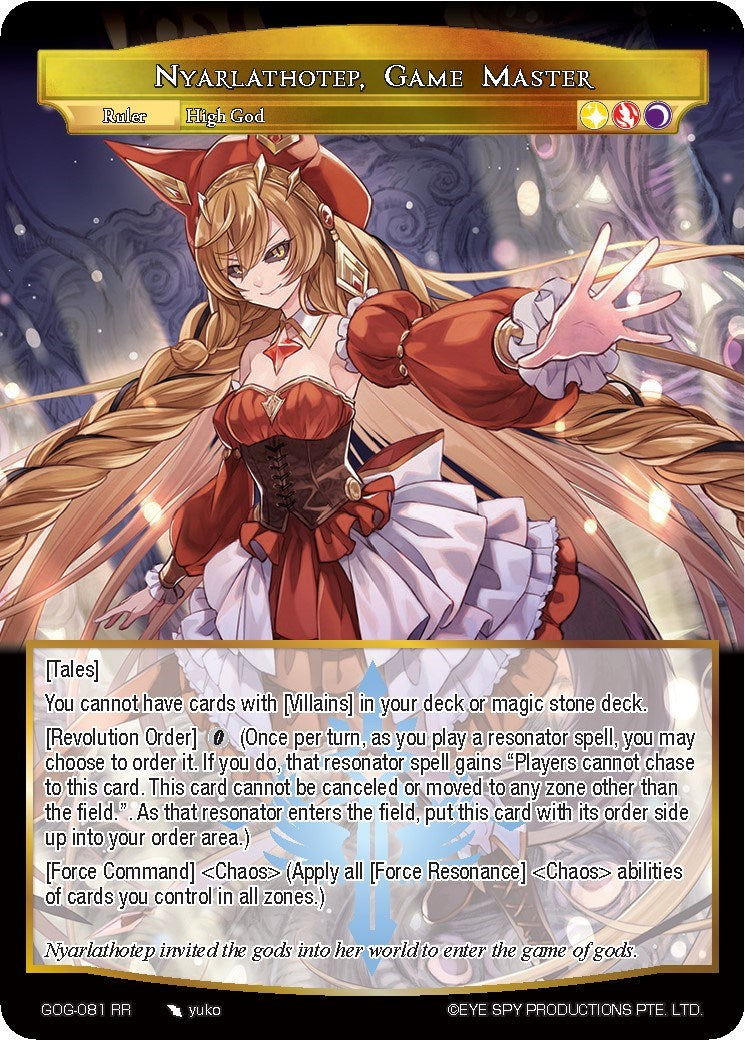 [Revolution Order] 0 (Once per turn, as you play a resonator spell, you may choose to order it. If you do, that resonator spell gains "Players cannot chase to this card. This card cannot be canceled or moved to any zone other than the field.". As that resonator enters the field, put this card with its order side up into your order area.)