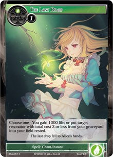 Choose one - You gain 1000 life; or put target resonator with total cost 2 or less from your graveyard into your field rested.