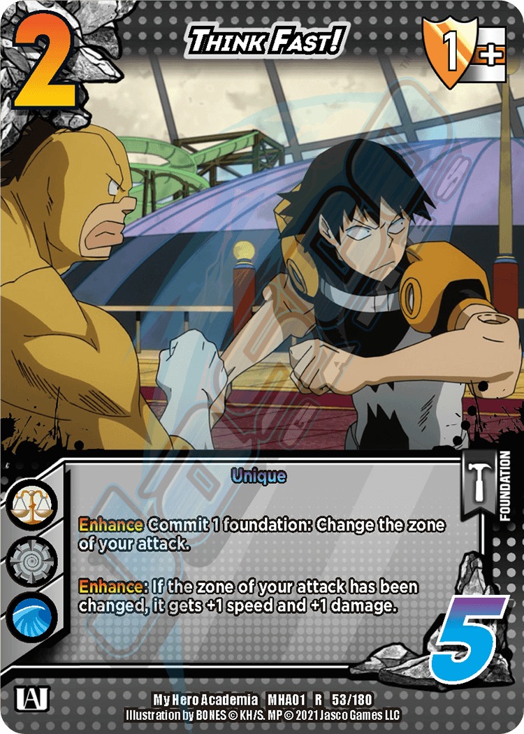 Enhance Commit 1 foundation: Change the zone of your attack. Enhance: If the zone of your attack has been changed, it gets +1 speed and +1 damage.