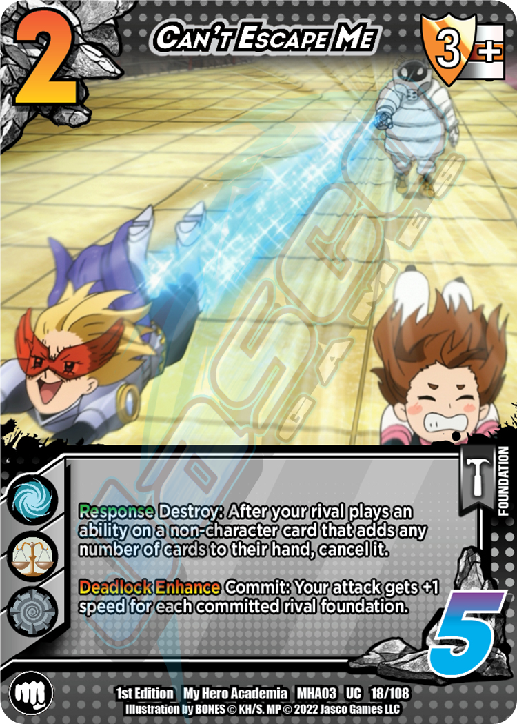 Response Destroy: After your rival plays an ability on a non-character card that adds any number of cards to their hand, cancel it. Deadlock Enhance Commit: Your attack gets +1 speed for each committed rival foundation.