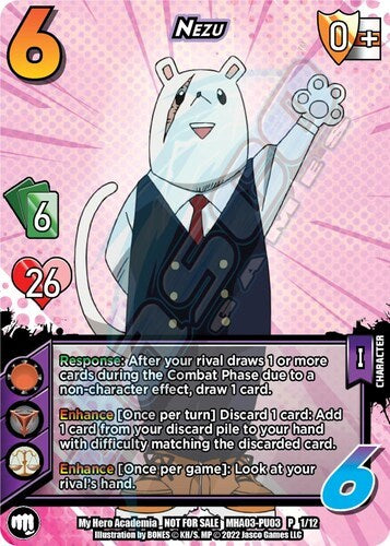 Response : After your rival draws 1 or more cards during the Combat Phase due to a non-character effect, draw 1 card. Enhance [Once per turn] Discard 1 card: Add 1 card from your discard pile to your hand with difficulty matching the discarded card. Enhance [Once per game]: Look at your rival's hand.